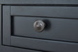 - Hardware with dark pewter-tone finish