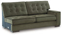 This sleek sectional with chaise offers a highly contemporary look with plenty of space to spread out. Dramatic tufted detailing and luxurious upholstery in a rich olive color create a sophisticated atmosphere. This sectional is perfect for those who love to entertain, or simply relax, in uptown style and comfort.